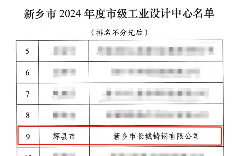 6月17日,新鄉(xiāng)市工業(yè)和信息化局公布了2024年度市級工業(yè)設計中心名單,本次共10家企業(yè)通過認定,新鄉(xiāng)市長城鑄鋼有限公司名列其中!